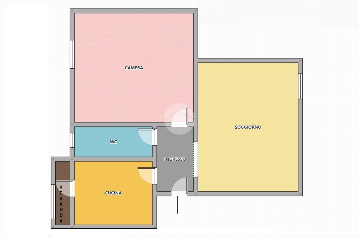 L' immobile è composto da un ingresso su disimpegno, ampio soggiorno, cucina con veranda, camera da letto, bagno.
